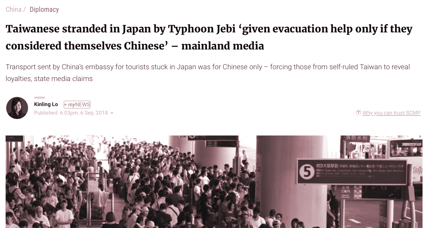 Quickly, the Chinese consulate in Osaka announced that it organised buses for Chinese nationals to be evacuated, with Chinese media outlets circulating several stories praising the consulate.